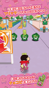 カスカベの街を猛ダッシュするしんちゃんを上下左右に操作し、いろんな障害物をよけながらしんちゃんが大好きなお菓子「チョコビ」をゲットしていくランゲームです。