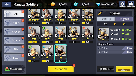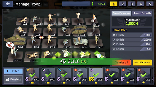 収集した様々なアイテムで軍隊をアップグレードし、ますます強力な敵と対戦できるように軍隊を育ててください。