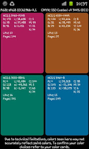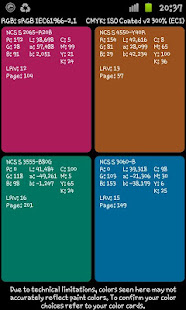 Colorix.com Pro App for Android contains all NCS®© and RAL CLASSIC colour references as well corresponding L*a*b*, sRGB, CMYK and LRV values.