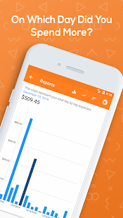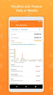 ★毎日のトランザクション監視。 iSaveMoneyは、1日の総費用の変動を示す棒グラフを表示します。