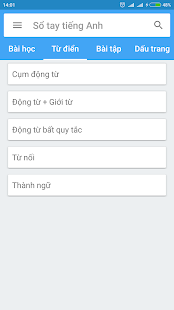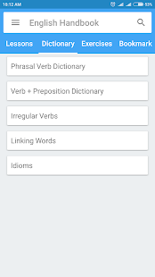 * Contains some english dictionary about irregular verbs, verb + preposition...