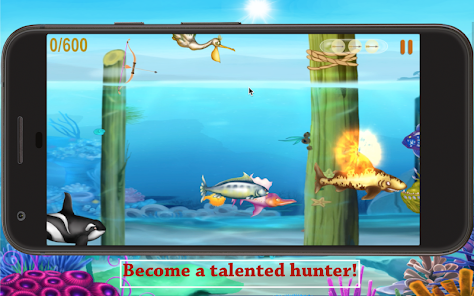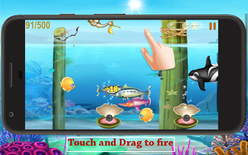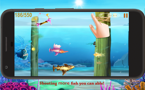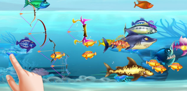 - ゲームでは、あなたの魚は魚を撃つために弓を護衛しています。タッチして魚のアーチェリーにドラッグします。