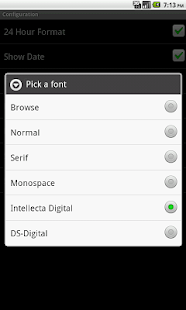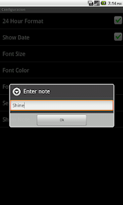 -To display the time again, just clear the Notes text. Select 'Font type' in 'Configuration' and enter the complete path of your .ttf file to enable custom fonts. You can download fonts .ttf files freely available on web.