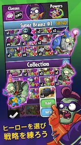 「Plants vs. Zombies 2」や「Plants vs. Zombies Garden Warfare 2」の開発チームから、新しいゾンビと植物のバトル「Plants vs. Zombies Heroes」が登場です。 この勇敢なカードゲームでヒーローを集めて自分だけのチームを作りましょう。 新しいキャラクターを見つけに行くと、途中で協力な敵と出会います。 植物とゾンビのどちら側でもプレイできるモバイル版初の機能が実装されています。 新しい戦場は芝生です