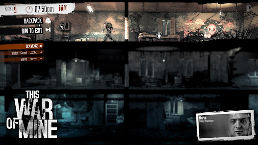 This War of Mineのペースは、昼と夜のサイクルによって決まります。日中は外の狙撃兵に避難所から出られないので、隠れ家の維持に集中する必要があります。つまり、生存者の作成、取引、世話をします。夜、民間人の1人をミッションに連れて行き、ユニークな場所のセットを通り抜けて、生き残るのに役立つアイテムを探し出します。