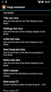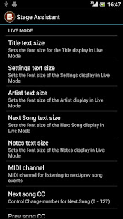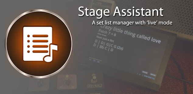 Stage AssistantはAndroid向けのアプリで、曲をデータベースに設定して、セットリストやパフォーマンスに整理することができます。ステージでは、アプリは、プリセット番号、コードスキーム、曲のテキストなど、各曲に入力した情報を表示します。 USB MIDIインターフェースとMIDIコントローラーをAndroidデバイスに接続すると、MIDIコントロールの変更を使用して曲を切り替えることができます。