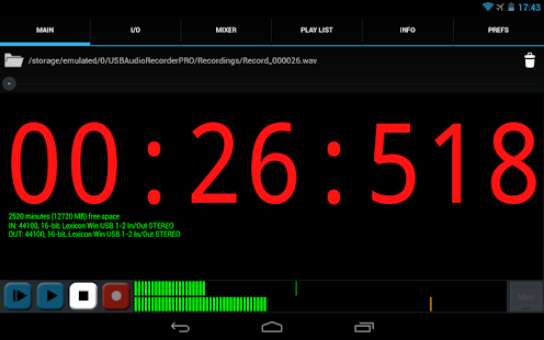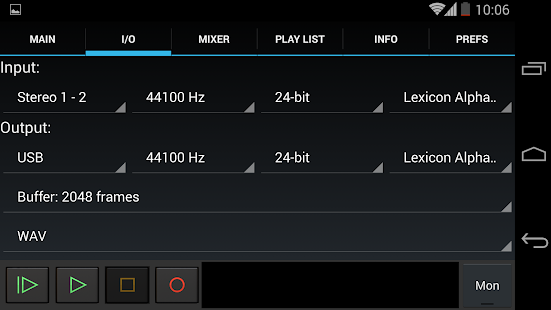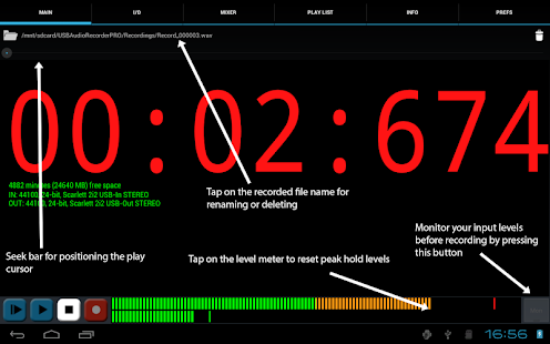 USBオーディオインターフェイスから高品質のオーディオを録音および再生します! 警告:これは一般的なドライバーではなく、このアプリ内からのみ再生および記録できます。 USBオーディオデバイスを他のアプリで使用することはできません!