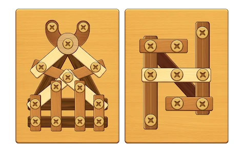 木製パズルを解く木の積み重ねの挑戦に立ち向かい、ボルトとナットをほぐし、木の奥深くに隠された秘密を解き明かします。