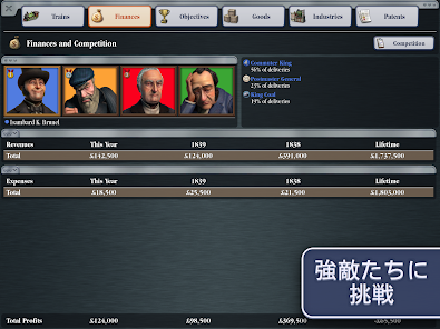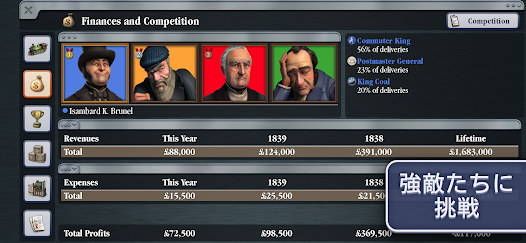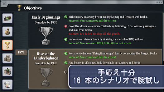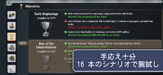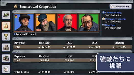 効率、革新、経営意思決定によって価値ある特許を取得し、株式を売買し、工場を育成・買収して収益を上げよう。世界の指導者や産業界の巨人たちと競いあい究極の目標を達成 当代で最も偉大な鉄道王を目指そう!