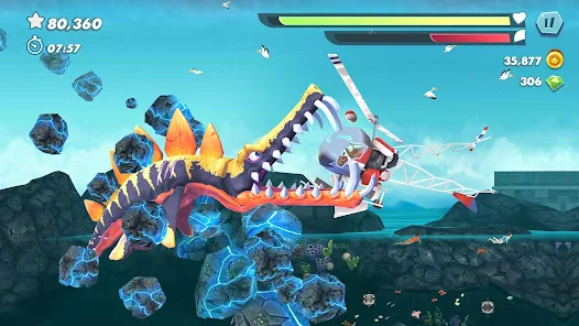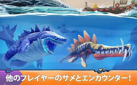 • 魚や動物などの獲物がいるオープンワールドの海を探検して、サイズとパワーを進化させながら獲物を探そう。