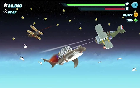 • ジェットパック、レーザー、シルクハットなどの強力なアクセサリーを装備してサメをカスタマイズし、究極の捕食者になろう。