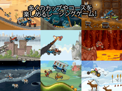 『ヒルクライムレーシング2』は、前作『ヒルクライムレース』で好評だった要素をすべて引き継ぎ、そして進化しました。人気のアドベンチャーモードはさらにパワーアップ。カップモードでは世界中のプレイヤーとレースができるほか、フレンドとチームを作って特別なレースを開催したり、豪華報酬を獲得することもできますスキンやアップグレードなど、マシンカスタマイズの幅も広がり、よりスリリングなヒルクライムドライブを体験できますさあ、レースを始めよう