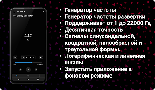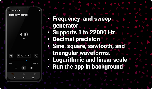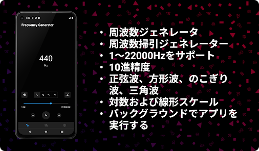 周波数発生器は、1Hzから22000Hzの周波数の波形を生成できるシンプルなAndroidアプリケーションで、正弦波、方形波、のこぎり波、三角波をサポートしています。
