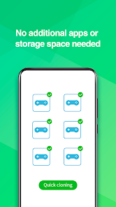 • リソース: Game Cloner は、アプリを実行するために追加のメモリ、バッテリー、またはデータを使用しません。ただし、複製されたアプリは、実行時にこれらのリソースの通常の量を使用します。