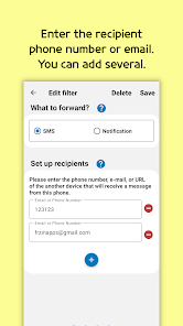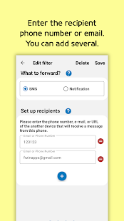- SMSまたは通知をメール、スマートフォン、URLに転送します。