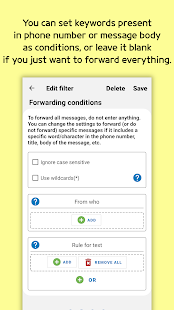 3. 電話番号またはメッセージ本文に存在するキーワードを条件として設定するかすべてを転送するだけの場合は空白のままにします。