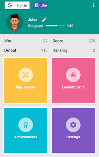 Spades free brings this classic 4-player contract trick taking card game to Google Play, created to the same high standard as the rest of our games, Spades plus supplies classy graphics, super smooth gameplay, highly scalable difficulty & much more! Play Spades free. Spades download.