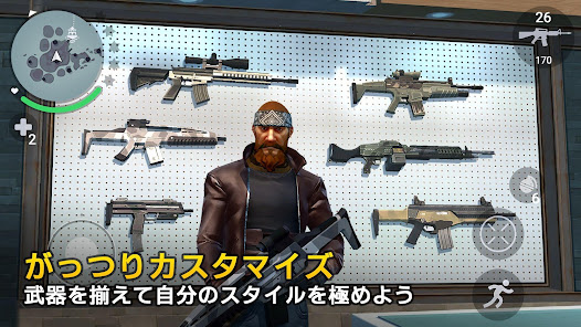 数多くの銃や武器、オートバイを含む乗り物を君の犯罪スタイルに合わせて装備、合成、進化を行おう。