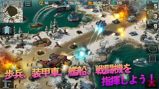 近代的戦争を描いたこのオンラインリアルタイム(RTS)ストラテジーゲームでは、戦場の司令官になった気分が味わえます。命令、征服、基地の建設、歩兵の訓練、戦車や装甲車、軍用機、戦艦の生産によって敵を撃破します。世界大戦に参加せよ。超強力な武器を駆使して自分の力を発揮せよフレンドと一緒にクランに参加してほかのクランと戦い、世界を制覇せよ。敵を徹底的に壊滅させるのだ