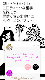 💋 Pureは、近場の人たちや海外の人たちとマッチングすることができる出会いアプリです。面倒なことは忘れて、本当の自分に正直になれる「大人のワンダーランド」、それがPureの世界。自分で冒険の行き先を決め、アドレナリンを大放出し、ドキドキ・ワクワクの感覚に飛び込んでください。オンラインチャットで趣味・嗜好の合う素敵な人たちと出会い、大人トークを楽しんで、自由な恋愛体験をしましょう!