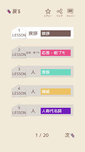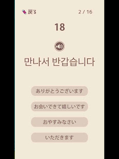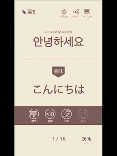 このアプリには頻出の挨拶なども含めた基本単語が、1600単語収録されています。