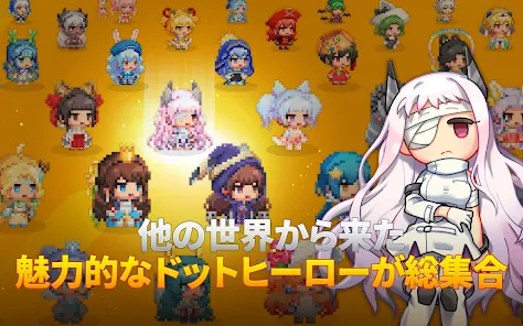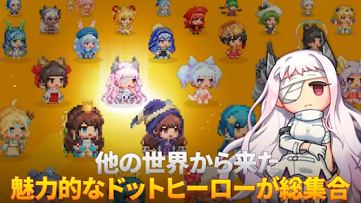 50個以上の可愛いキャラクターの魅力的な2Dイラストとドットキャラクターをゲーム内で確認できます。
