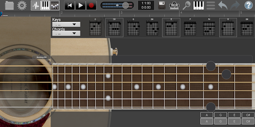 · Virtual (right hand and left hand) guitars with bending, capo and chords.
