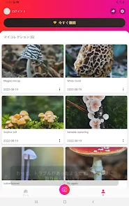 マシュルームの写真を撮影、もしくはアップロードすることでピクチャーマシュルームのアプリがすぐに情報をお教えします。