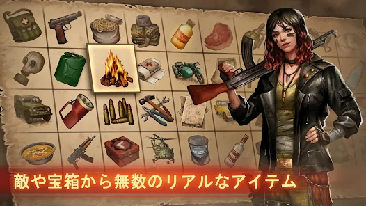 Day R SurvivalのRPG風のゲームプレイは、あなたをサバイバルスキルが試されるポストアポカリプティックな荒野に没頭させます。食料を狩る、リソースを集め、敵に対抗して自分自身を守るための武器を製作する必要があります。黙示録の暗い日々を探索し、死ぬ方法がないこの世界で生き残るために戦ってください。
