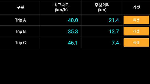 ✓ Trip reset: If you long touch the trip name, you can initialize that trip. (Trip reset button availvale in the statistics screen also.)