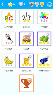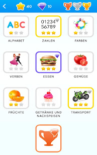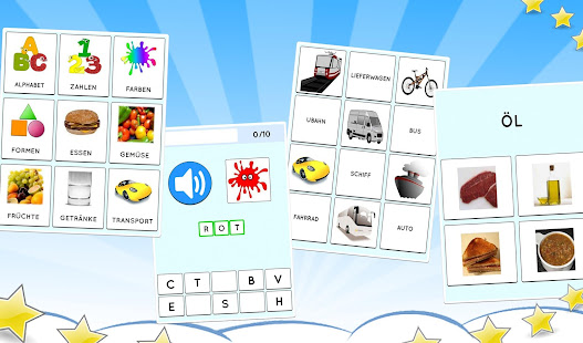 Basic: Alphabet letters , Numbers , Colors , Verbs , Food …