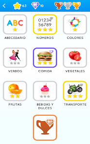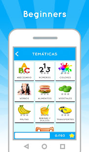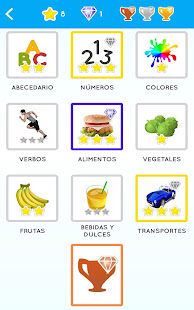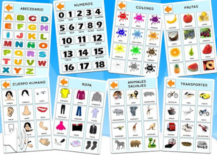 Basic: Alphabet letters , Numbers , Colors , Verbs , Food …