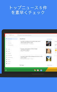 ノートパソコンやデスクトップで利用する場合、Google News モバイルアプリとデスクトップ用ウェブサイトnews.google.comをペアリングすることで、利用するデバイスにかかわらず、常に最新のニュースにアクセスできます。