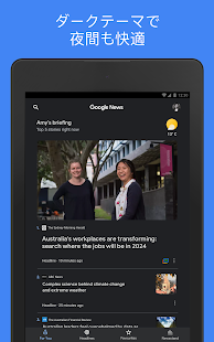 あらゆるデバイスからアクセス: Google ニュースは、デバイスや接続速度に関係なく快適に利用できるように設計されています。接続速度が遅い場合やデータ通信量を抑えたい場合は、画像のサイズを小さくしたり、ダウンロードするデータ量を少なくしたりすることで快適に動作します。記事を WiFi でダウンロードしておいて、後からオフラインで読むこともできます。