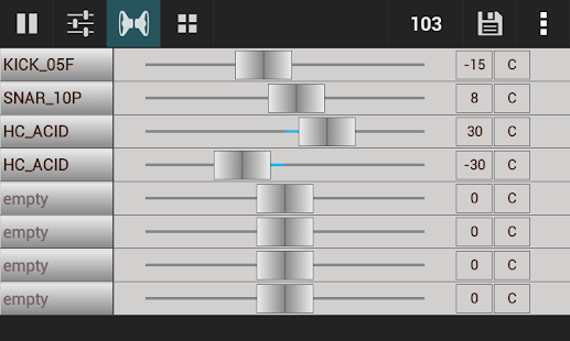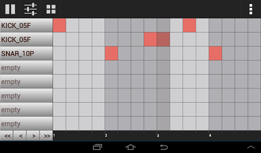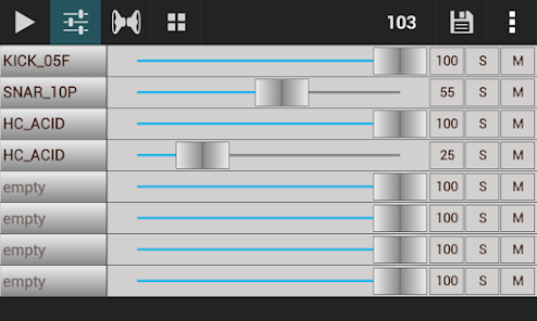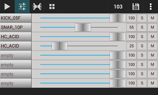 mixer, sample list with file manager for importing WAV, AIFF, DS, OGG or FLAC sounds from your sdcard.