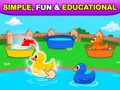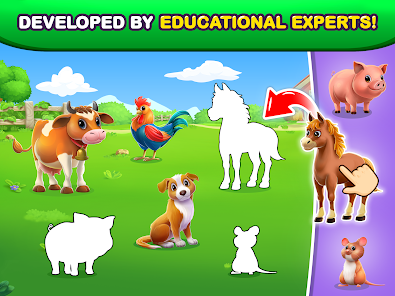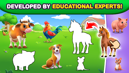 子供たちは色、形を学び、簡単なテーマの物語を理解します。かわいい動物の世話をしたり、サイズ、色、形で物を分類したりします。