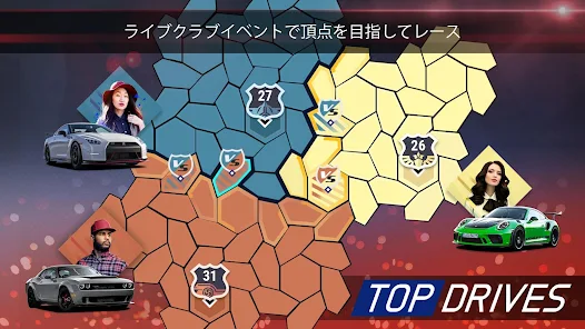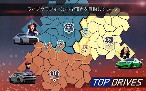 車を結合させ、ホットウィールの性能を限界まで引き出しましょう。本物の車と同じようにパフォーマンスとハンドリング、グリップの最高の組み合わせでチャンピオンになりましょう。エンジンをスタートして『Top Drives』でエキサイティングなアップデートを行い、ポルシェ、ジャガー、ランドローバーなどの新登場のメーカーの最高にクールで速い車でサーキットに飛び込みましょう。新しいゲームモードと世界の車文化に基づく新イベントも楽しめます。