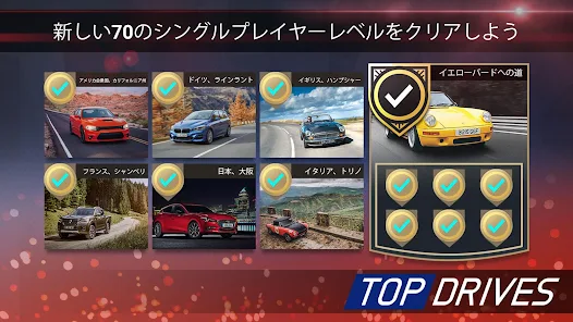 車を愛する皆さん、『Top Drives』で、スキルと知識を極限まで試すハイオクのドライビングチャレンジに挑みましょう。車についてなら負けない 『Top Drives』は4000以上の現実世界の車を収集し、他のプレイヤーと競う新しいカードコレクションゲームです。