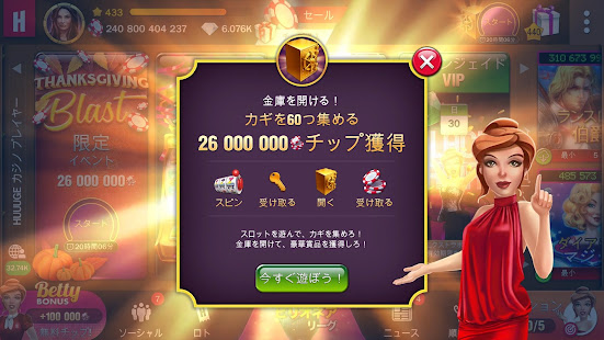 ゲーム内で世界中のプレイヤーと繋がって、本場ラスベガスのスロットやカジノゲームを一緒に遊ぶことができる!パチンコやパチスロ好き、それともカジノが初めての人でも、Huuugeカジノ™ をダウンロードして、ラスベガスカジノをあなたのポケットに持ち歩きましょう!