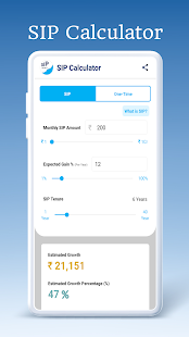 This easy SIP calculator helps you plan your SIP investments. With SIP calculator app you can see estimated gain across different mutual fund categories. You can see both SIP returns as well as one-time (lump sum) returns.