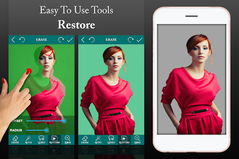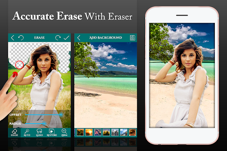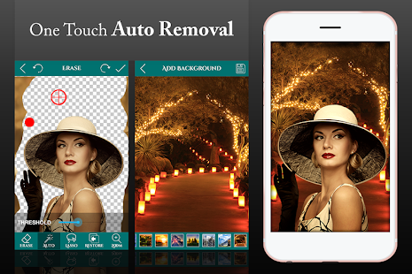 究極の背景消しゴムは、写真の背景を変更するための迅速かつ簡単な方法を提供します。ちょうどあなたが消去すると自動消しゴムツールは、あなたのための残りの作業を行いますたいエリアをタッチします。また、指のタッチによって、またはなげなわ(イメージカット)ツールを使用して手動であなたの写真の背景を消去することができます。