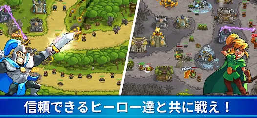 森林、山岳、荒野で戦闘を繰り広げ、ディフェンスをカスタマイズし、様々なタワー戦略を駆使して、敵からの攻撃を阻止しよう爆撃し、援軍を召集して軍隊を先導、またファンタジー戦士、エリート軍人、壮大なヒーローを雇い入れ、伝説のモンスターとのアクション冒険に挑み、王国を守ろうアクション満載のこのサバイバルタワーディフェンス王国防衛戦争で構築の戦略を打ち立てよう