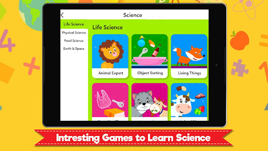 Learn science lessons like Life Science, Physical Science, Food Science, Earth & Space with over 20+ educational science games.