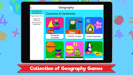 Learn everything about geography with 15+ geography games. Includes lessons on Countries, Continents, Flags, Capitals of Countries, Monuments & Landmarks.