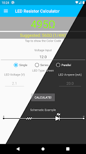 LED Resistor Calculator will allow you to calculate, with precision, the ideal resistance for the LED you would use, also suggesting how many Watts it should be. The app have a little built-in database with common led values, but you can also insert custom values!