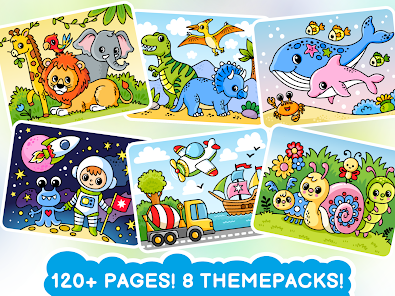多くのキッズゲームは、子供の注意を引くだけでなく、幼児の教育と発達に大きな影響を与えます。特に、これが子供向けの描画アプリケーションまたは塗り絵(描画)である場合。絵を描いたり、絵に色を塗ったりすることで、幼稚園児は思考の発達に影響を与える細かい運動能力を発達させるだけでなく、絵を通してさまざまな物の形や色を研究することで、私たちの世界について多くを学びます。この子供向けの塗り絵には、子供向けの魅力的な絵がたくさん含まれています。