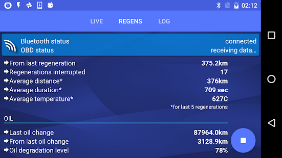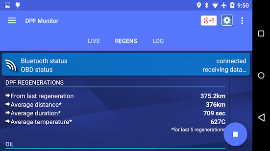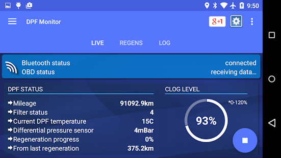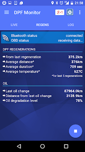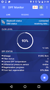 Control your diesel engine condition by monitoring DPF diesel particulate filter clog level and regenerations history. Easily check if the filter is currently in the regeneration process.