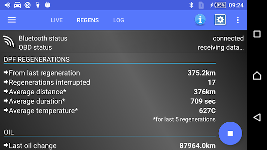 - Average distance for last 5 regenerations stored in car engine control unit - ecu