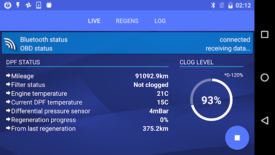- Current dpf status and clog level