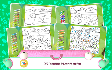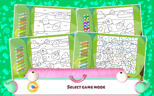 学齢期の子供たちは、複雑な塗り絵モードを楽しむことができます。ここでは、絵が多数の要素に分割されているため、最初は絵が何を描いているかを判断するのが困難です。年長の子供は、足し算と引き算の課題を追加することで、課題を複雑にする可能性があります。絵に色を付けるために、子供たちは例題を解き、正しい答えを選択する必要があります。これにより、子供は頭の中で素早く算数をする方法を学ぶことができます。